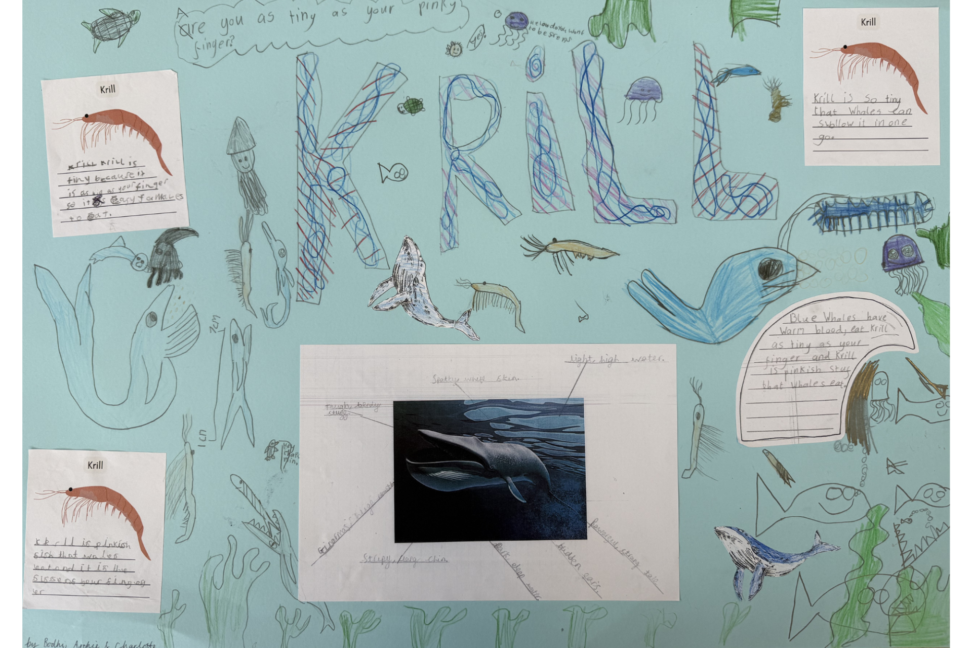 Year 2 have been busy learning all about oceans this term across a few subjects! In English, we've been reading a non-fiction book about blue whales, a topic the children are now all experts in. In groups, the children were given a specific area of a blue whale to write about and together labelled illustrations, wrote captions, questions and statement sentences and drew lovely images to create a big page for our massive class book. The results were brilliant and when put together, the book looks very impressive!