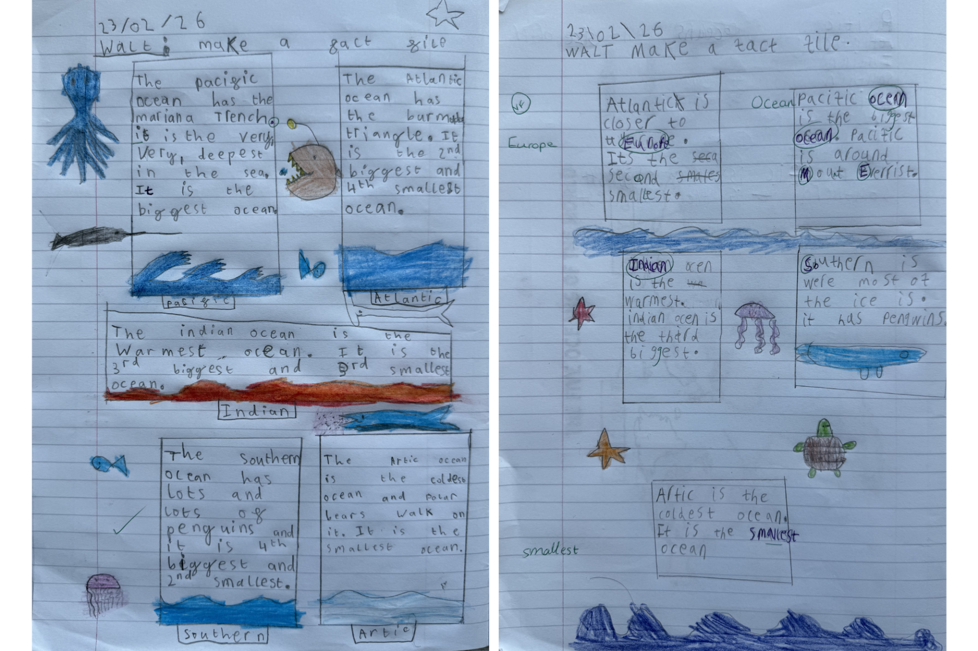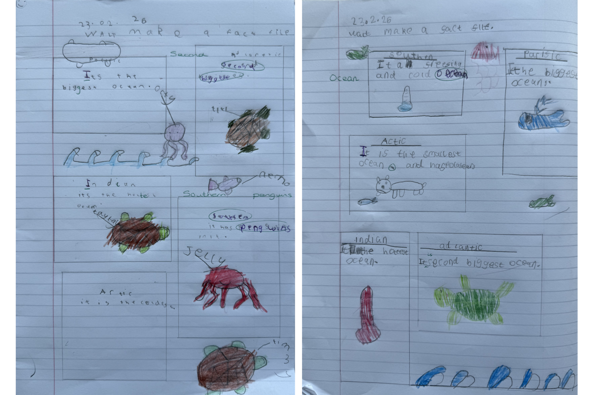 Then in Geography, we have been learning about oceans and continents and the children were tasked with creating an ocean fact file on the 5 oceans.