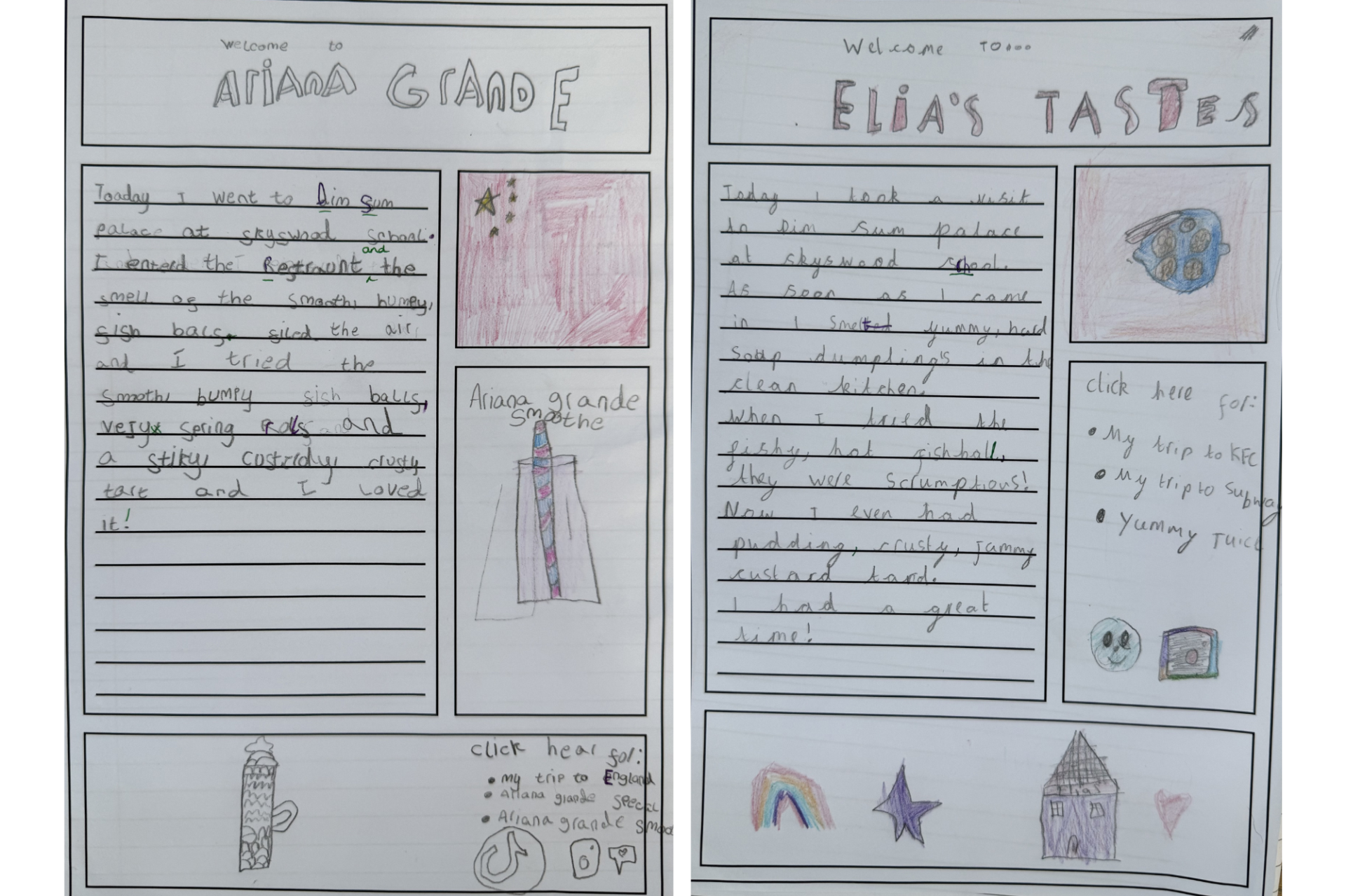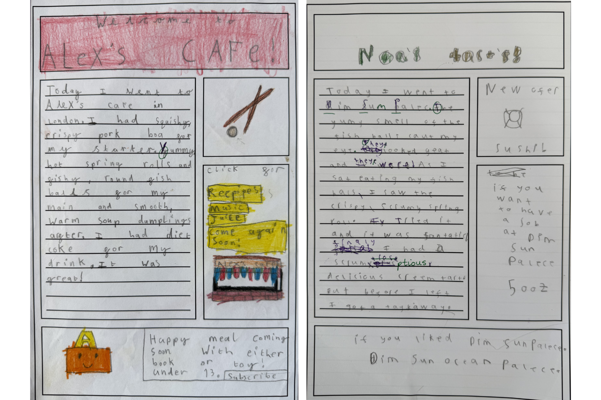 Once they had finished their work as a food critic for the day, they were then appointed another position - a food blogger. The children used their expanded noun phrases to write up a short article about their experience at the restaurant, whether good or bad!